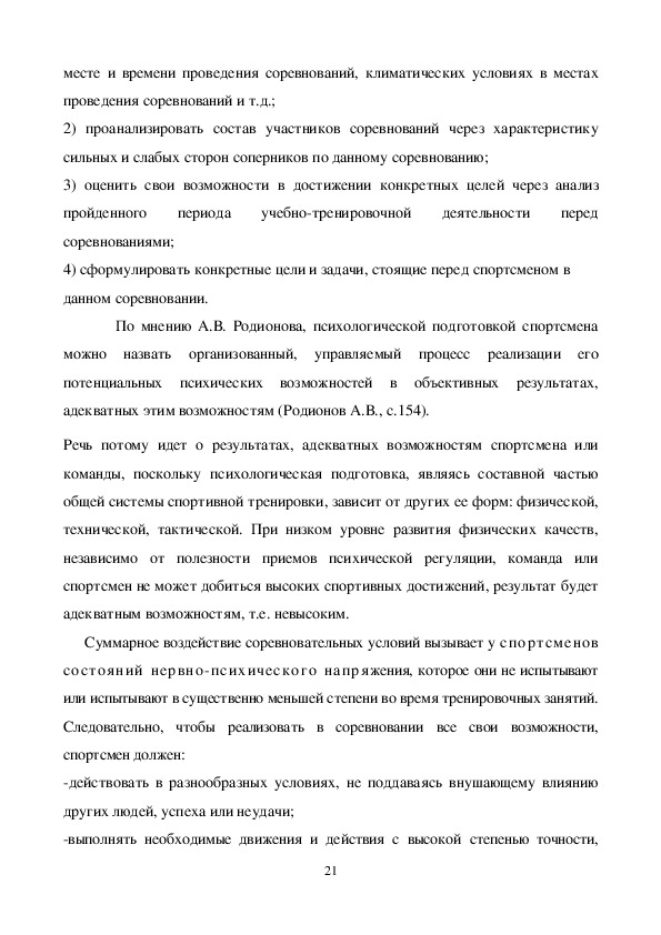 деятельности. Ее целью необходимо считать адаптацию к соревновательным