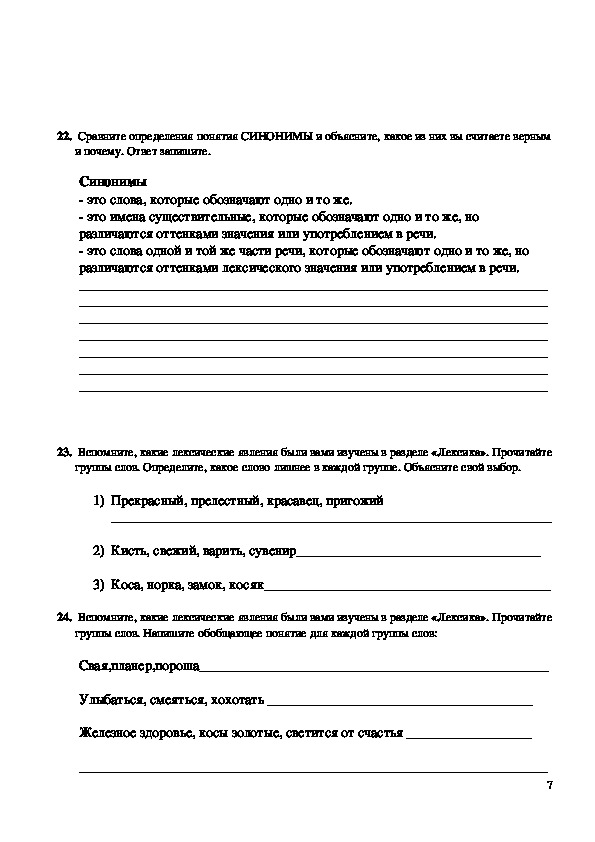 7. Внимательно прочитайте слова. Дайте определение каждому слову из списка. Определите,