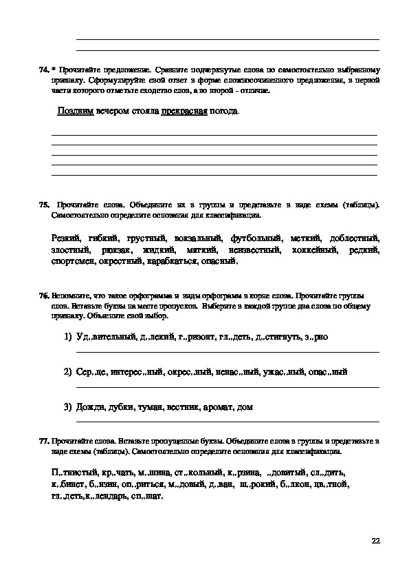 77. Прочитайте слова. Вставьте пропущенные буквы. Объедините слова в группы и представьте в