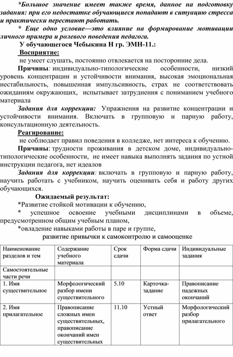 Причины: трудности проживания в детском доме, индивидуально-типологические особенности, не имеет навыка выполнять задания по устной инструкции педагога, нет идеалов
