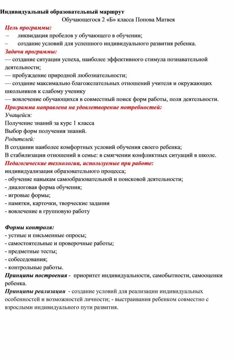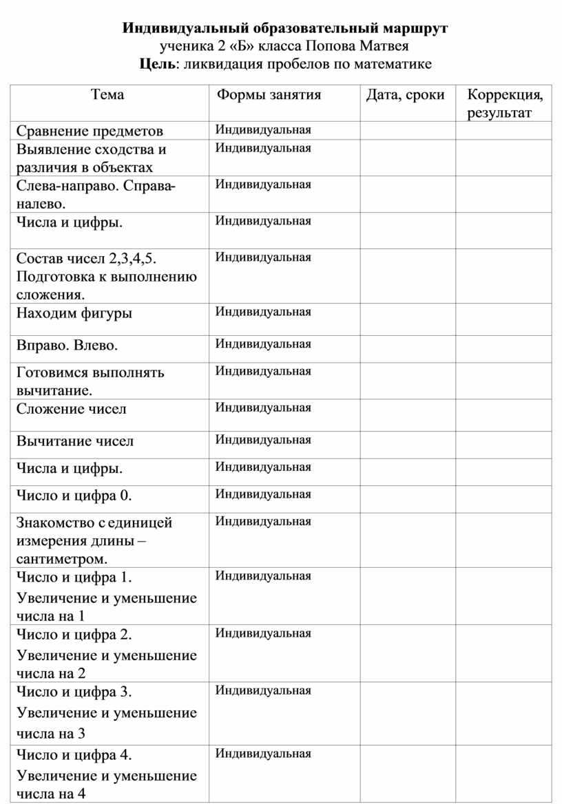 Индивидуальный образовательный маршрут представляет собой план, который отражает уникальные линии развития ученика. Он включает в себя цели, задачи, методы и формы работы, а также критерии оценки. Важно понимать, что такой маршрут не является статичным документом; он может и должен корректироваться по мере продвижения ученика, что позволяет реагировать на его успехи и трудности.