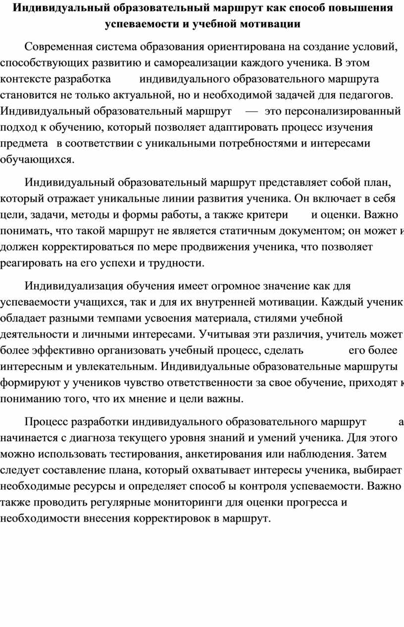 Индивидуальный образовательный маршрут как способ повышения успеваемости и учебной мотивации