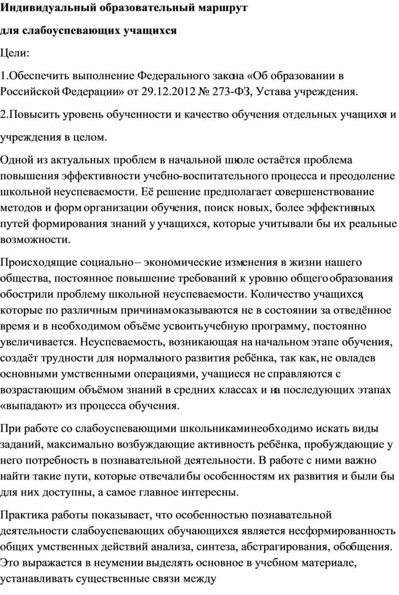 Происходящие социально – экономические изменения в жизни нашего общества, постоянное повышение требований к уровню общего образования обострили проблему школьной неуспеваемости. Количество учащихся, которые по различным причинам оказываются не в состоянии за отведённое время и в необходимом объёме усвоить учебную программу, постоянно увеличивается. Неуспеваемость, возникающая на начальном этапе обучения, создаёт трудности для нормального развития ребёнка, так как, не овладев основными умственными операциями, учащиеся не справляются с возрастающим объёмом знаний в средних классах и на последующих этапах «выпадают» из процесса обучения.