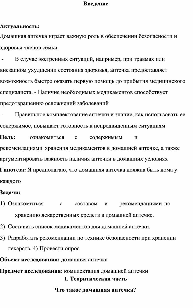 Гипотеза: Я предполагаю, что домашняя аптечка должна быть дома у каждого