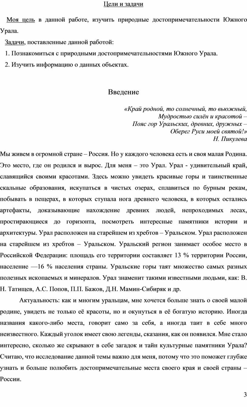 Моя цель в данной работе, изучить природные достопримечательности Южного Урала.