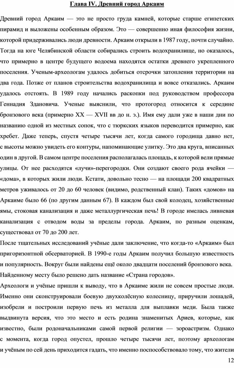 Глава IV. Древний город Аркаим ……………………………………………………...... 12