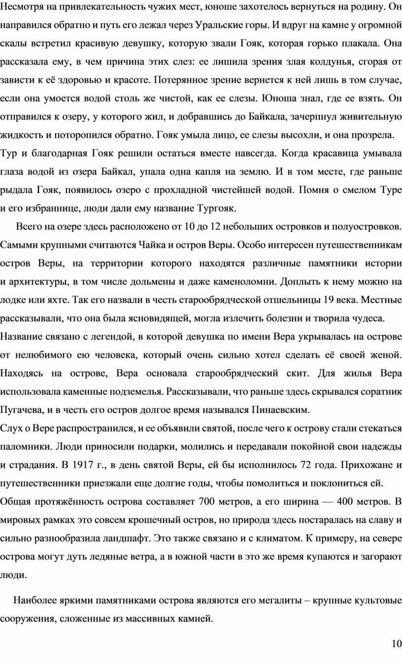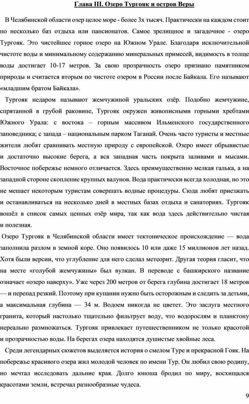 Глава III. Озеро Тургояк и остров Веры …………………………………………............ 9