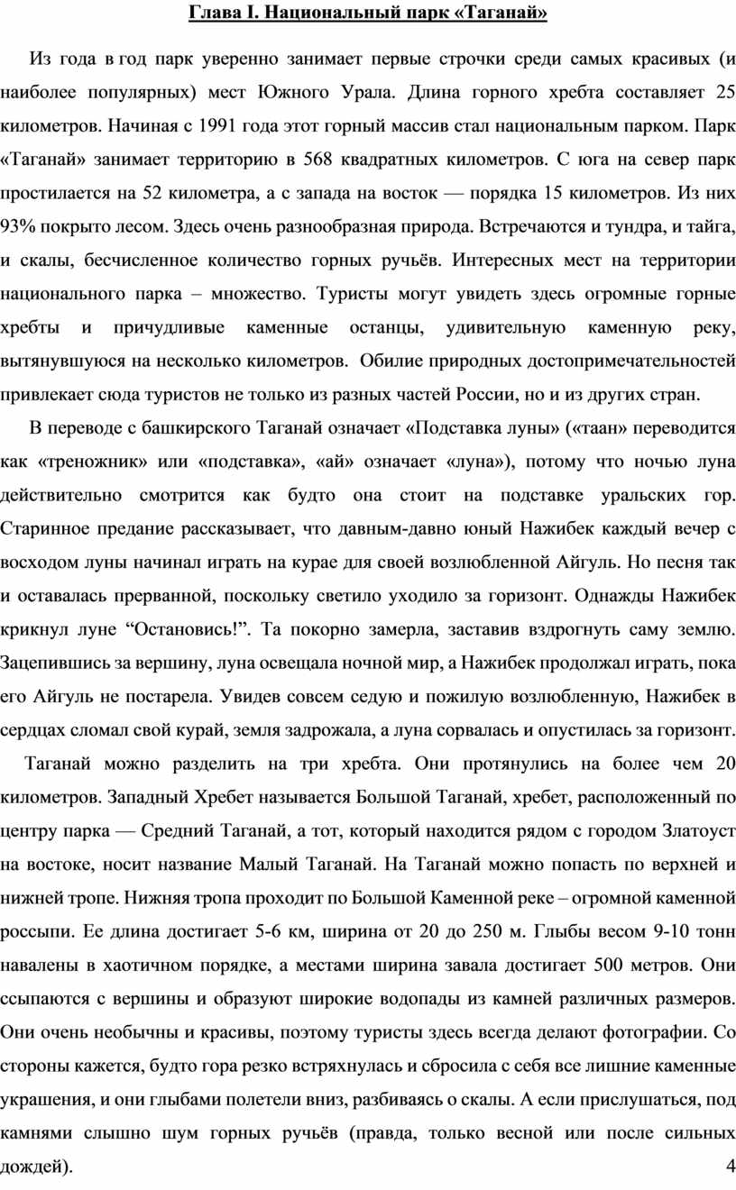 Глава I. Национальный парк «Таганай» …..………………………………………………4