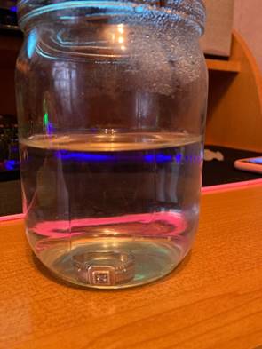 Я взял серебряное украшение и поместил его в сосуд с жидкостью. Во второй сосуд просто налил воды (не клал серебро) . Оставил отстаиваться на 24 часа.