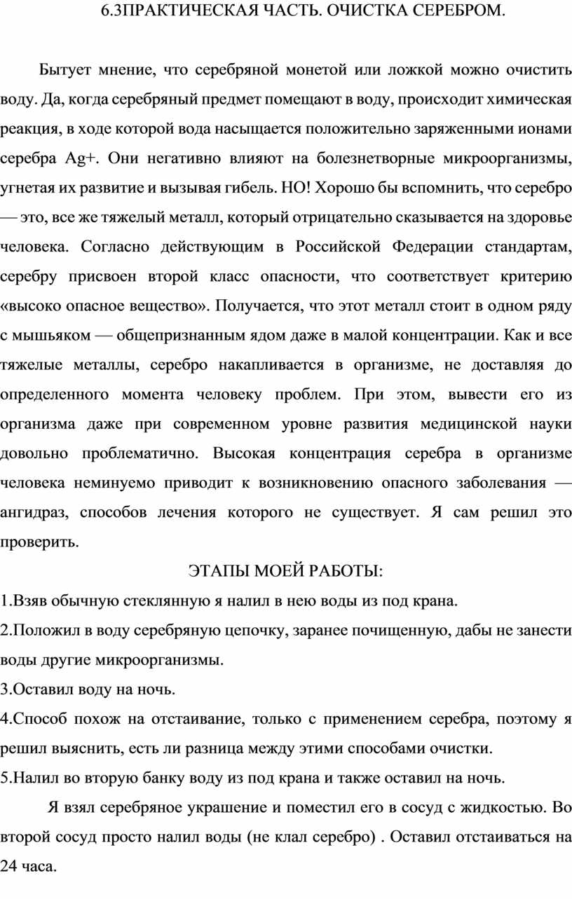 6.3ПРАКТИЧЕСКАЯ ЧАСТЬ. ОЧИСТКА СЕРЕБРОМ.