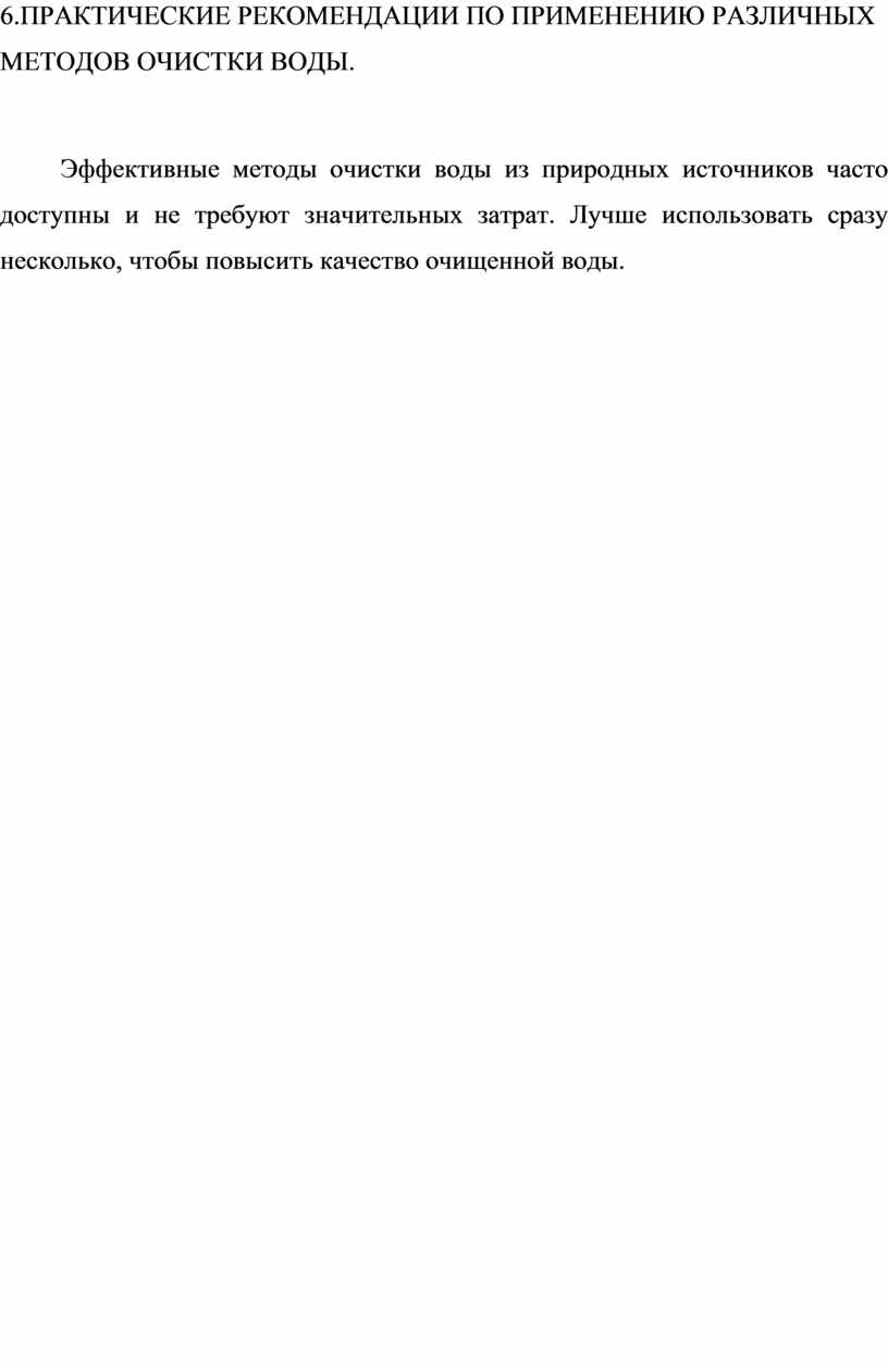 ПРАКТИЧЕСКИЕ РЕКОМЕНДАЦИИ ПО ПРИМЕНЕНИЮ РАЗЛИЧНЫХ МЕТОДОВ ОЧИСТКИ ВОДЫ.