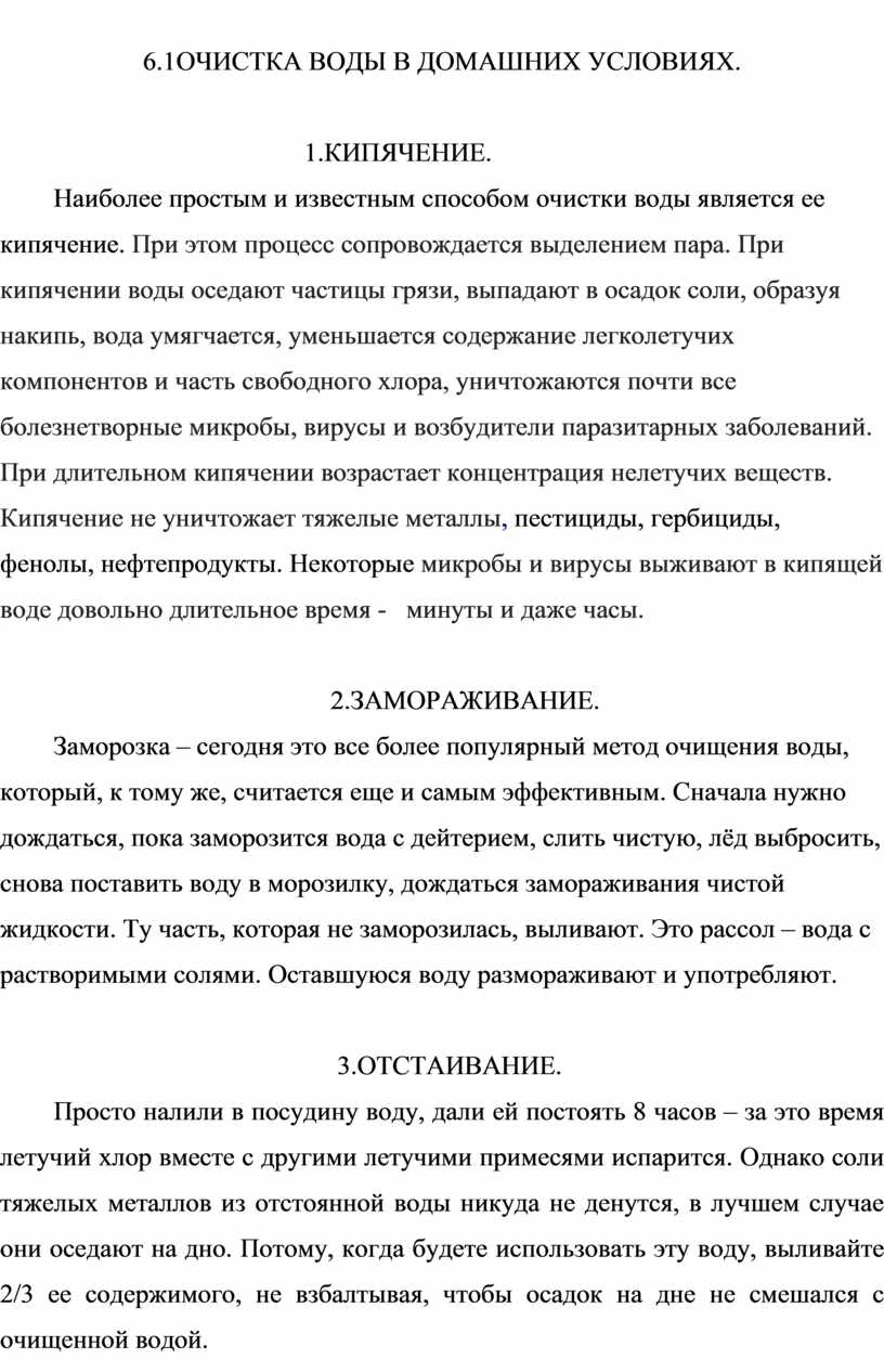 6.1ОЧИСТКА ВОДЫ В ДОМАШНИХ УСЛОВИЯХ.