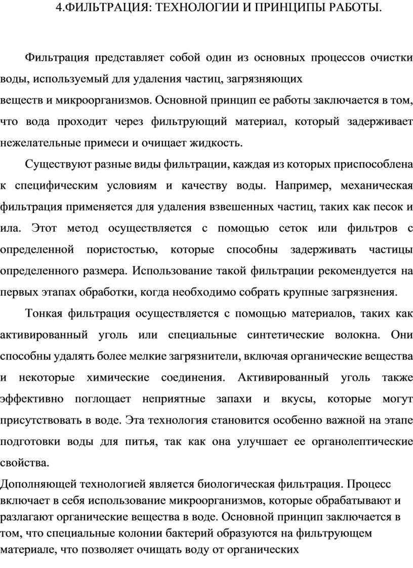 Фильтрация, в свою очередь, представляет собой более сложный, но и более эффективный метод, который позволяет значительно улучшить качество воды. Мы рассмотрели различные технологии фильтрации, включая использование активированного угля, песчаных фильтров и других материалов. Каждый из этих методов имеет свои преимущества и недостатки, и выбор конкретного способа очистки зависит от уровня загрязненности воды и доступных ресурсов.
