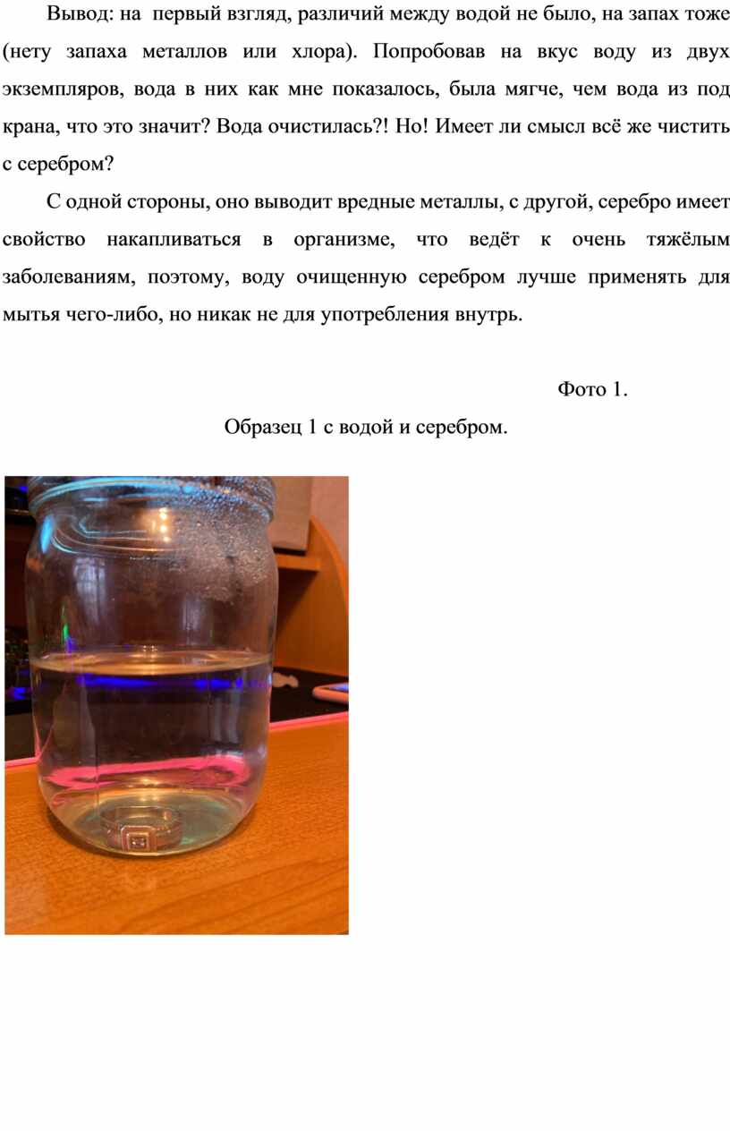 Вывод: на первый взгляд, различий между водой не было, на запах тоже (нету запаха металлов или хлора). Попробовав на вкус воду из двух экземпляров, вода в них как мне показалось, была мягче, чем вода из под крана, что это значит? Вода очистилась?! Но! Имеет ли смысл всё же чистить с серебром?