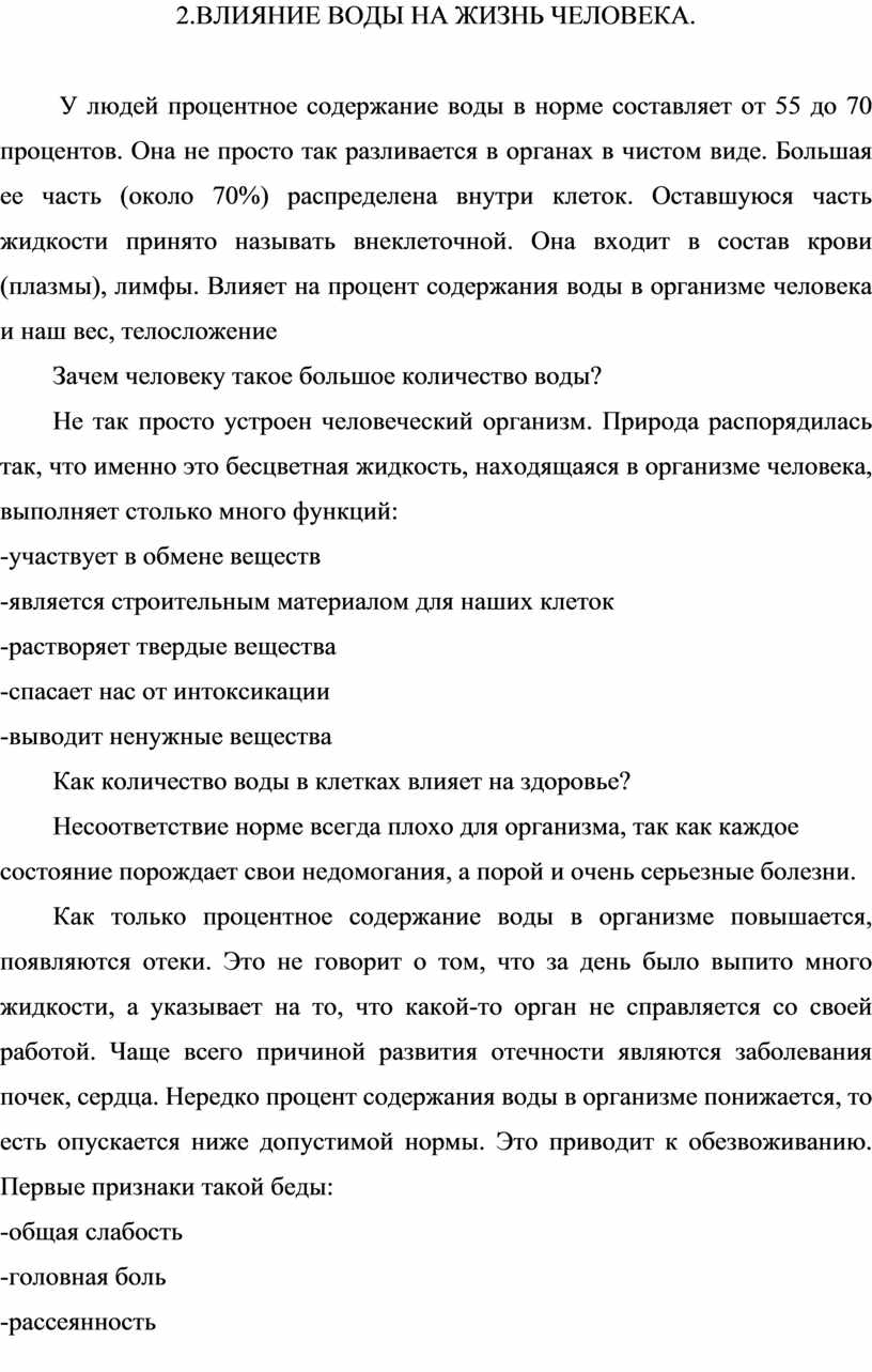 2.ВЛИЯНИЕ ВОДЫ НА ЖИЗНЬ ЧЕЛОВЕКА.