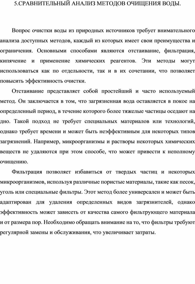 СРАВНИТЕЛЬНЫЙ АНАЛИЗ МЕТОДОВ ОЧИЩЕНИЯ ВОДЫ |