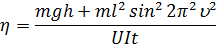 Подставляем в формулу кпд, заменяя угловую скорость на эквивалентную формулу, выраженную через частоту: