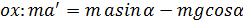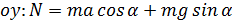 Распишем проекции действующей на тело силы тяжести на оси абсцисс и ординат.