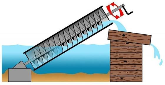 Винтовой насос для подъема воды изобрел греческий ученый Архимед, проживавший в 3 в. до н.э. на острове Сицилия. Устройство представляет собой полую трубу с винтом внутри. Весь механизм располагается под наклоном: нижний конец в воду, верхний — на возвышении. Винт имеет рукоять, за которую система и приводится в движение. При вращении нижняя лопасть забирает воду, она скользит по спирали вверх, где выливается в емкость или трубу (приложение 2).