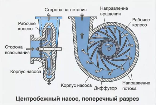 Рис. 1 Устройство центробежного насоса