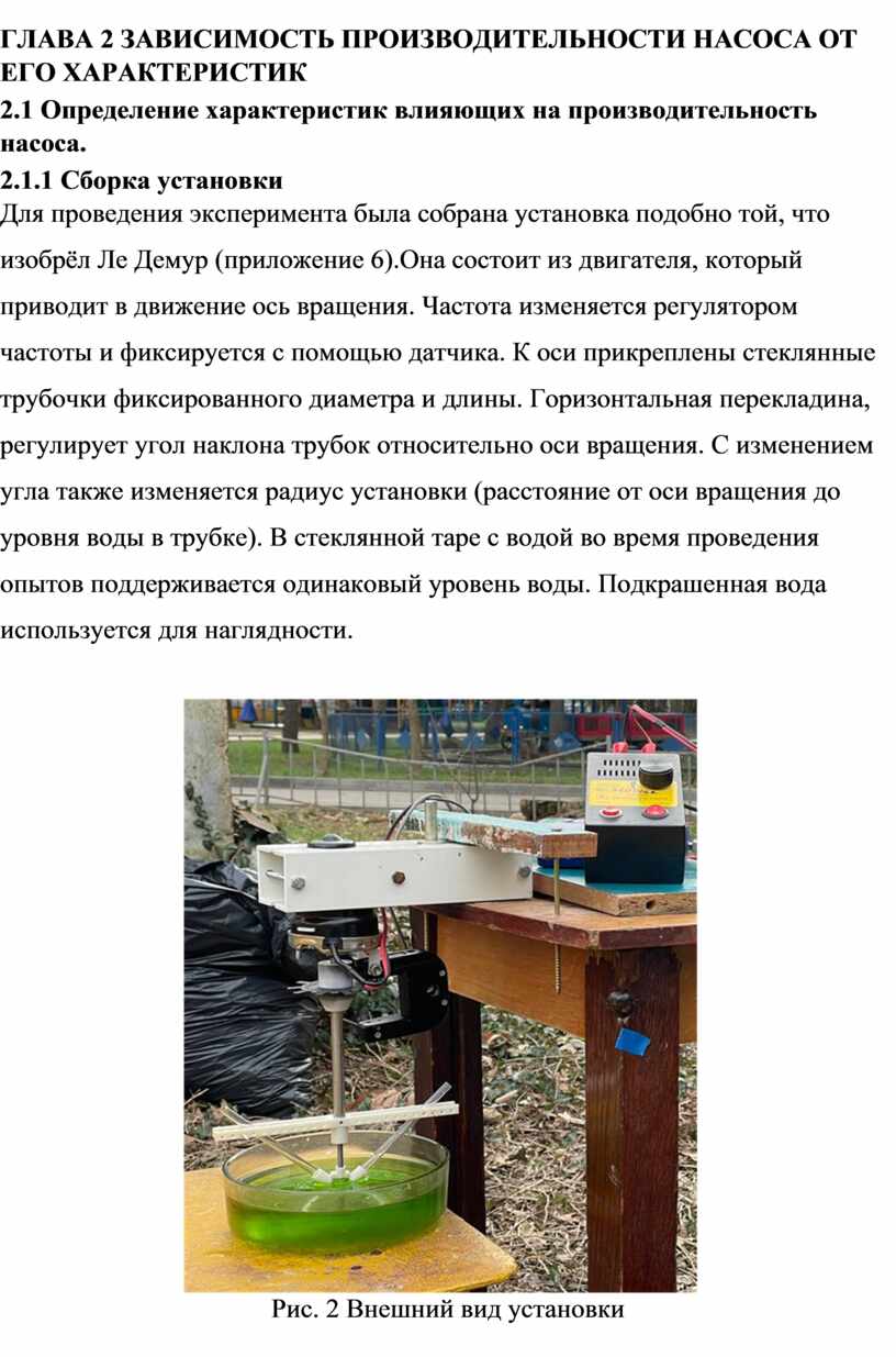 «Простейший водяной насос и его существенные параметры, влияющие на производительность»