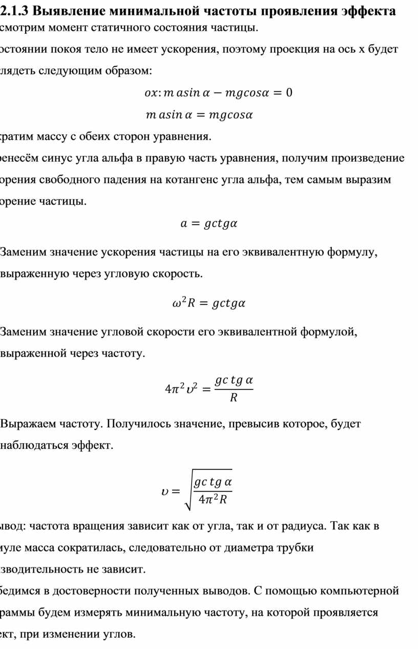 Вывод: частота вращения зависит как от угла, так и от радиуса. Так как в формуле масса сократилась, следовательно от диаметра трубки производительность не зависит.