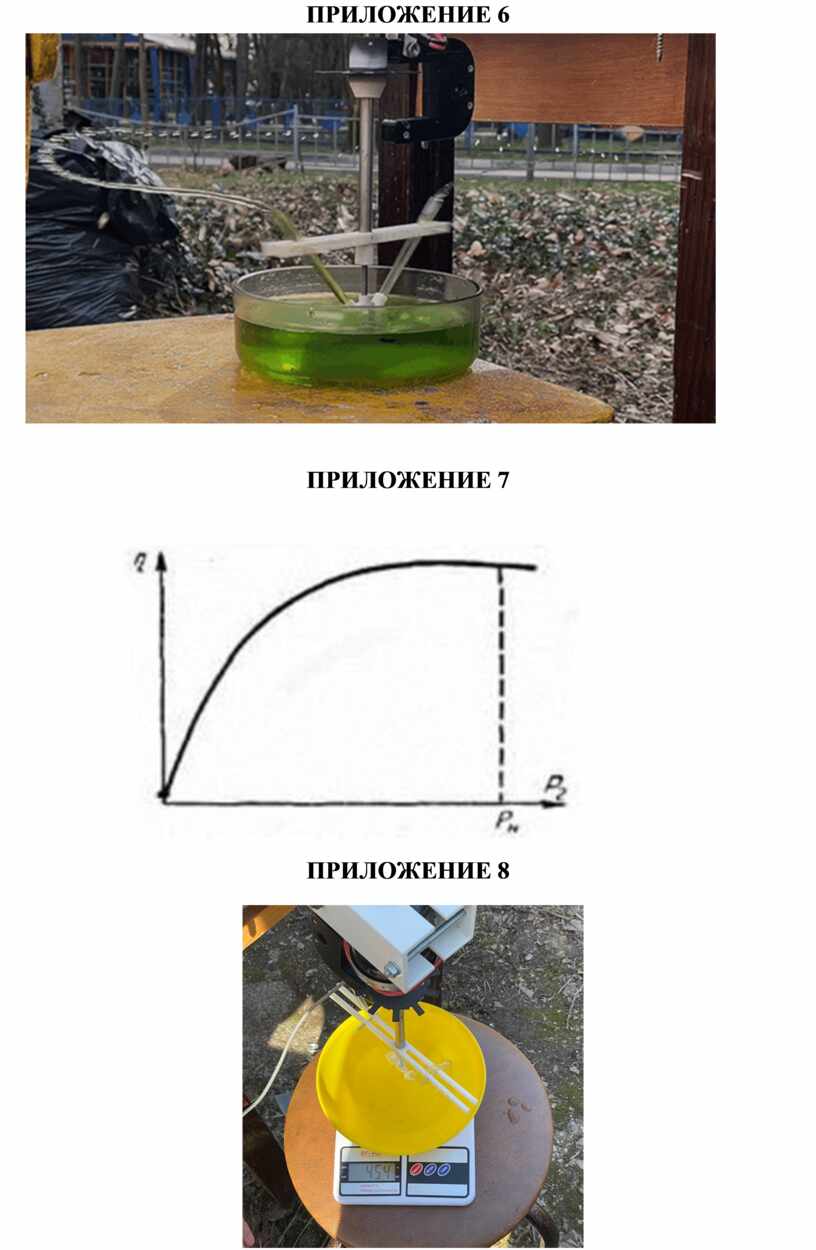 Так как в эксперименте использовались довольно низкие обороты и слабые токи ( 1А и 0,5В ), то кпд такого насоса будет иметь значение от 10-15 % (приложение 7).
