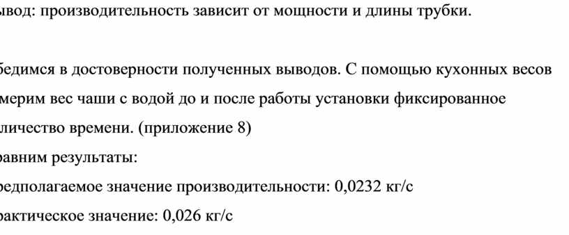 Вывод: производительность зависит от мощности и длины трубки.