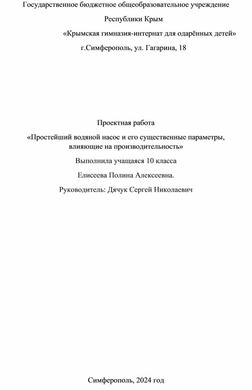 Руководитель: Дячук Сергей Николаевич