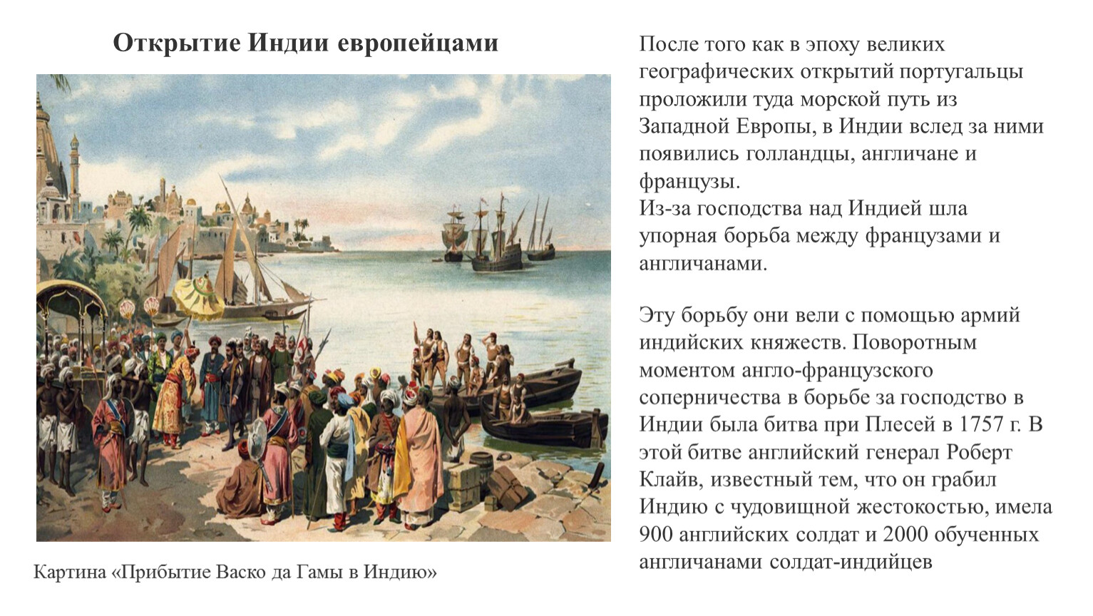 После того как в эпоху великих географических открытий португальцы проложили туда морской путь из Западной Европы, в Индии вслед за ними появились голландцы, англичане и французы.