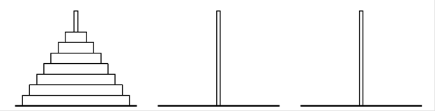 на один из которых нанизаны семь колец убывающих размеров, как показано на рис.
