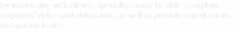 clients. Specialists must be able to explain taxpayers' rights and obligations,