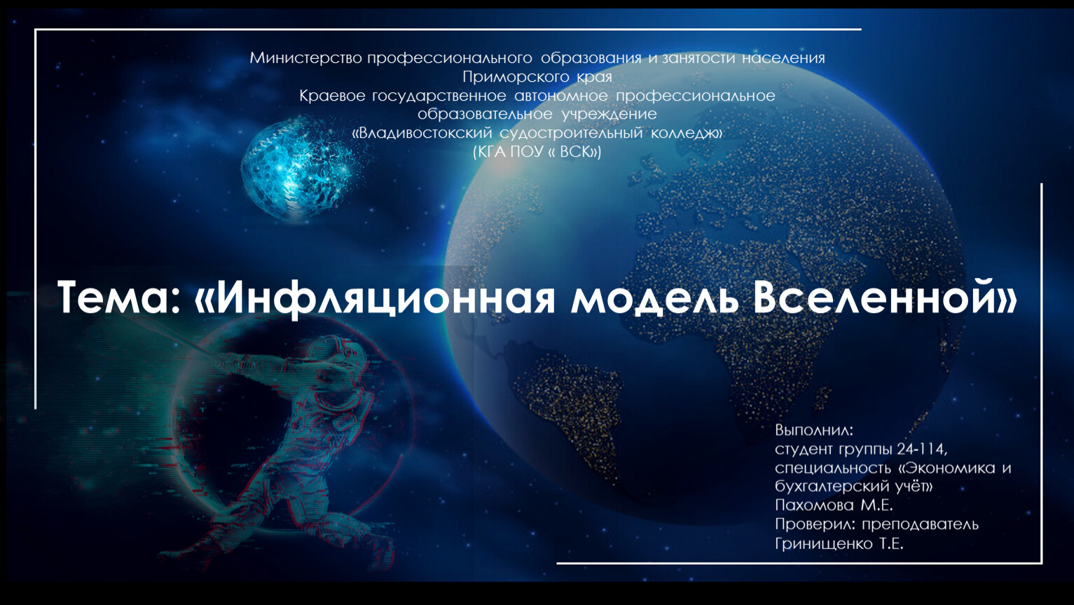 - изучить историю появления инфляционной модели Вселенной и вклад ученых, занимавшихся данным исследованием;