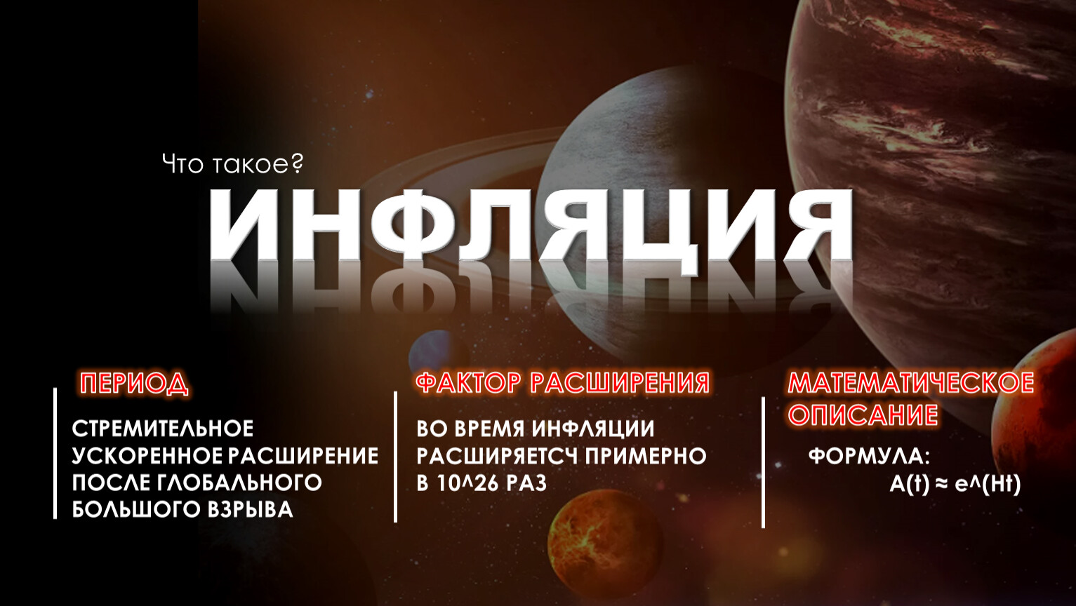 ВО ВРЕМЯ ИНФЛЯЦИИ РАСШИРЯЕТСЧ ПРИМЕРНО В 10^26 РАЗ