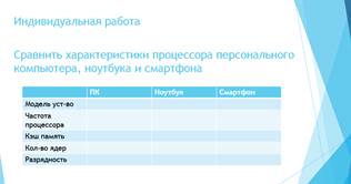 · Объяснять назначение основных характеристик процессора: разрядность и тактовая частота |
