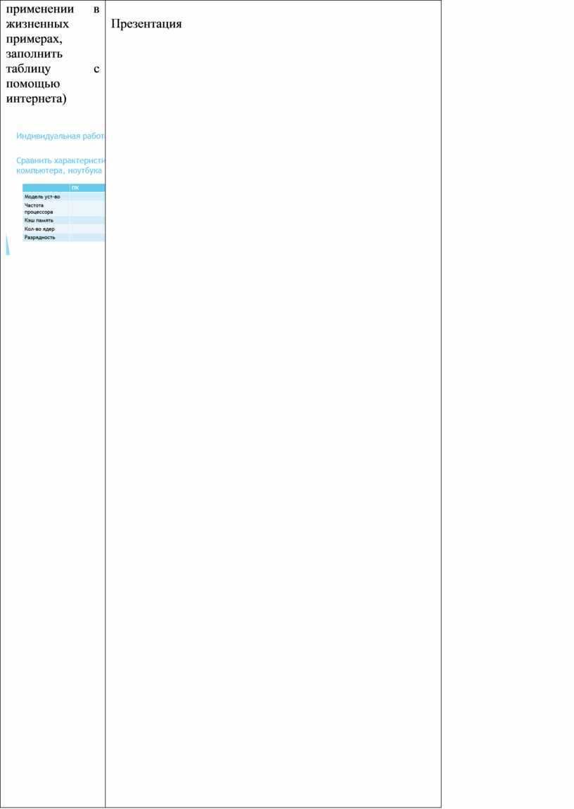 · Знает основные характеристики и назначения процессора · Применяет знания при выборе ноутбука в интернет магазине |