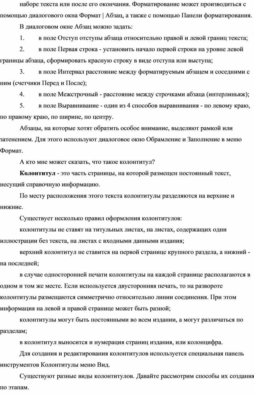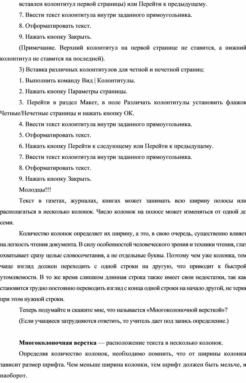 Опираясь на личный опыт, учащиеся могут ответить, что это разбиение текста на несколько колонок.