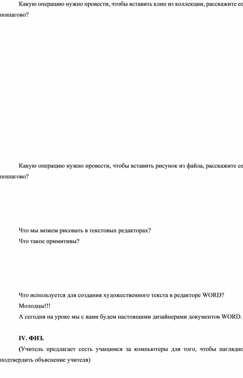 2)Развивать знания учащихся о возможностях WORD полученные на уроке.