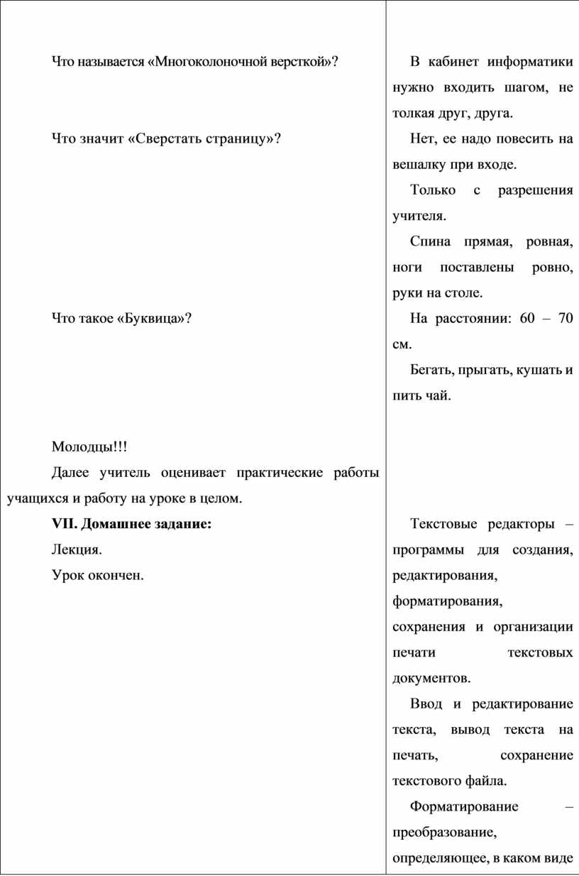 Молодцы!!! Далее учитель оценивает практические работы учащихся и работу на уроке в целом. VII. Домашнее задание: Лекция. Урок окончен. |