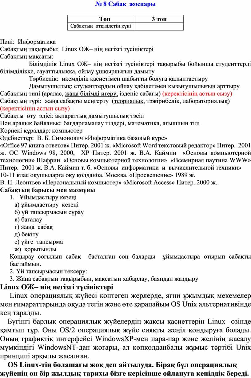 Сабақтың тақырыбы: Linux ОЖ– нің негізгі түсініктері