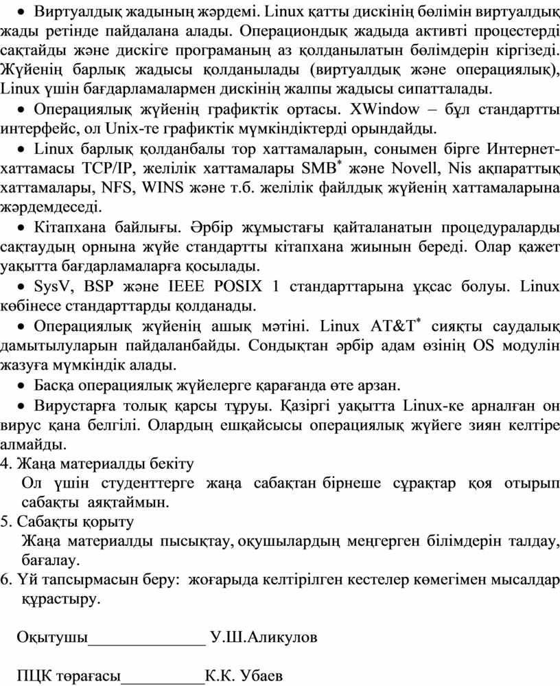 Білімділік Linux ОЖ– нің негізгі түсініктері тақырыбы бойынша студенттерді білімділікке, сауаттылыққа, ойлау ұшқырлығын дамыту