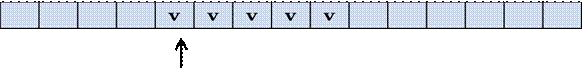 Задача: исходное состояние показано на рисунке. Машина должна стереть знак в текущей клетке и присоединить его слева к группе знаков, расположенных справа от каретки.