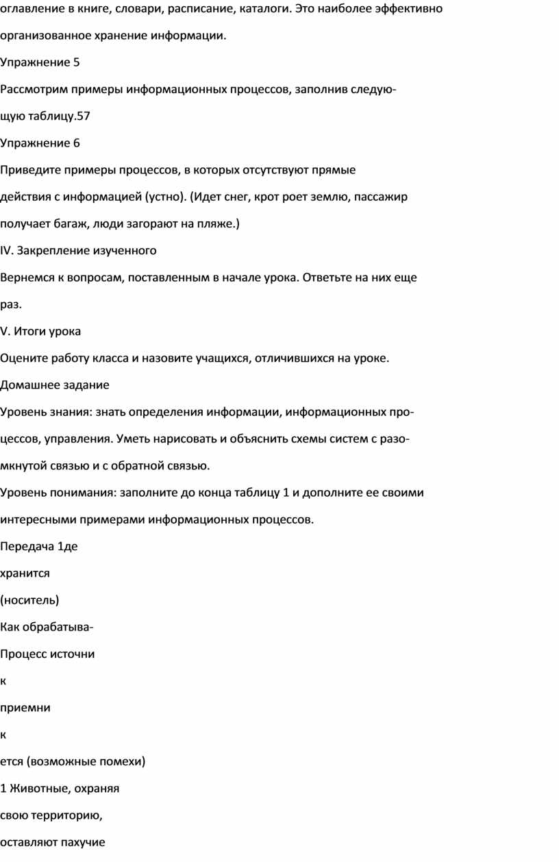 процессов; научить приводить примеры информационных процессов в