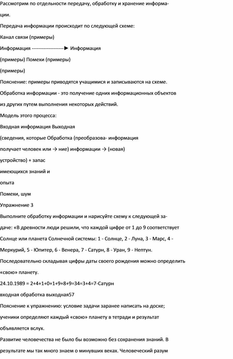 Рассмотрим по отдельности передачу, обработку и хранение информа-