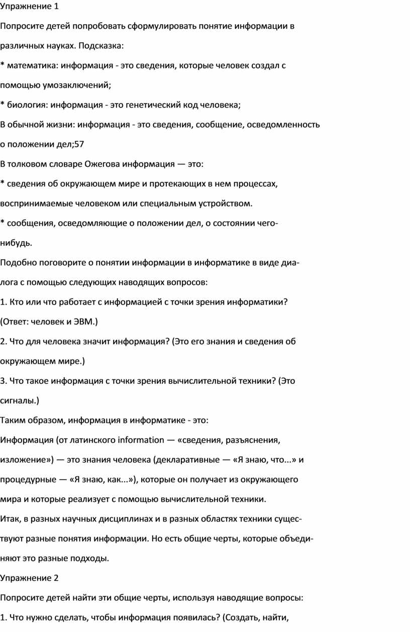 Попросите детей попробовать сформулировать понятие информации в