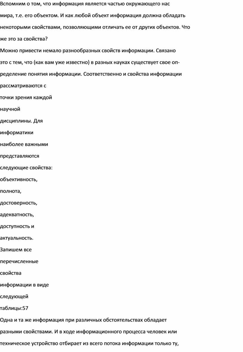 мира, т.е. его объектом. И как любой объект информация должна обладать