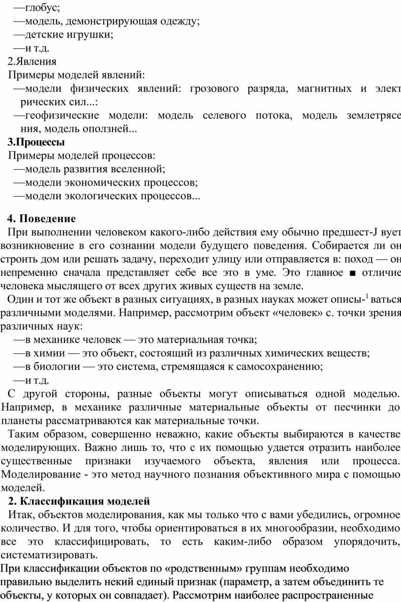 В своей деятельности человек очень часто использует модели, то есть создает образ того объекта, явления или процесса, с которым ему предстоит иметь дело.