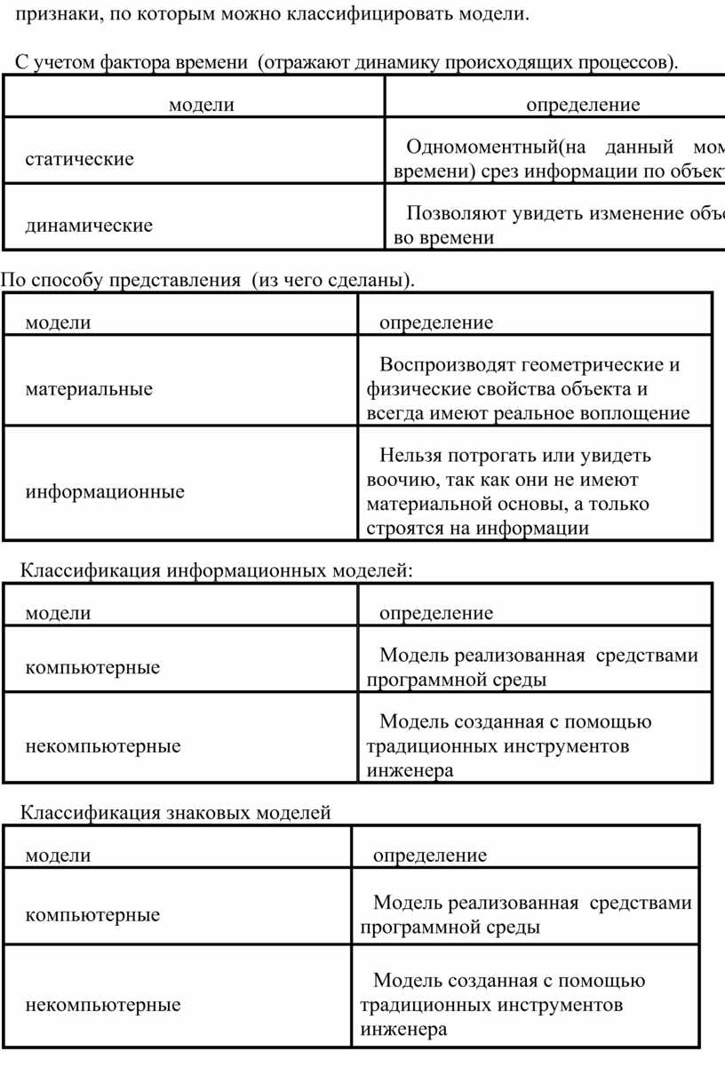 · приводить примеры различных моделей; классифицировать модели по различным признакам; систематизировать объекты; осуществлять системный анализ.