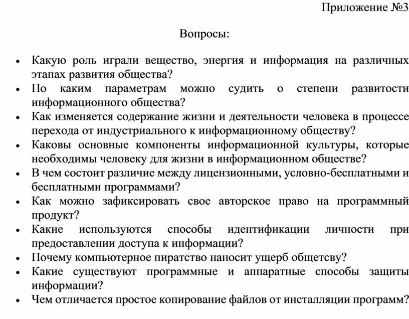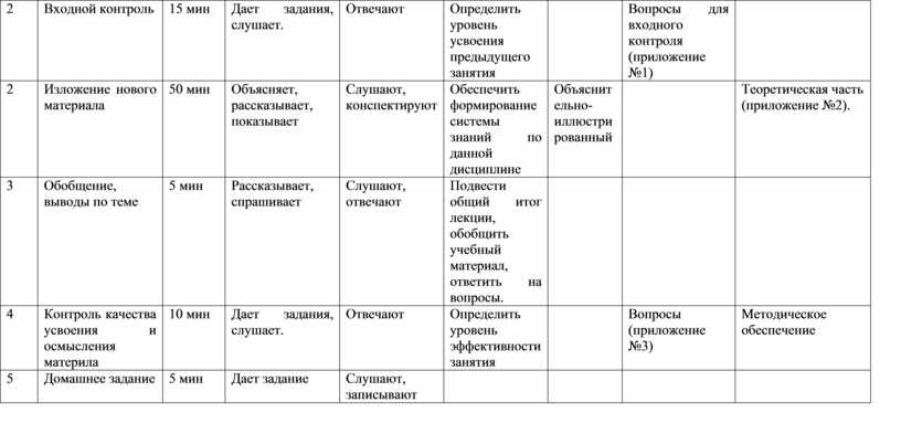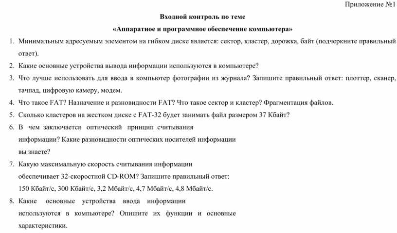 Вопросы для входного контроля (приложение №1) |