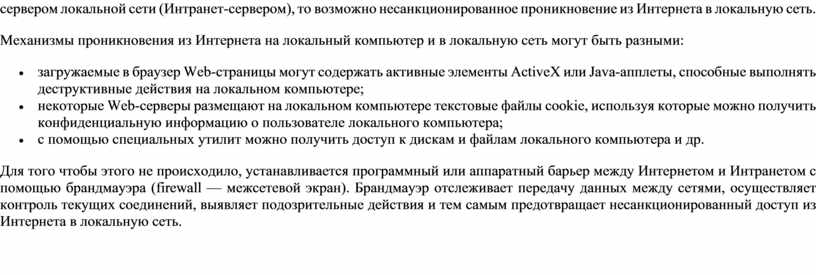 Механизмы проникновения из Интернета на локальный компьютер и в локальную сеть могут быть разными: